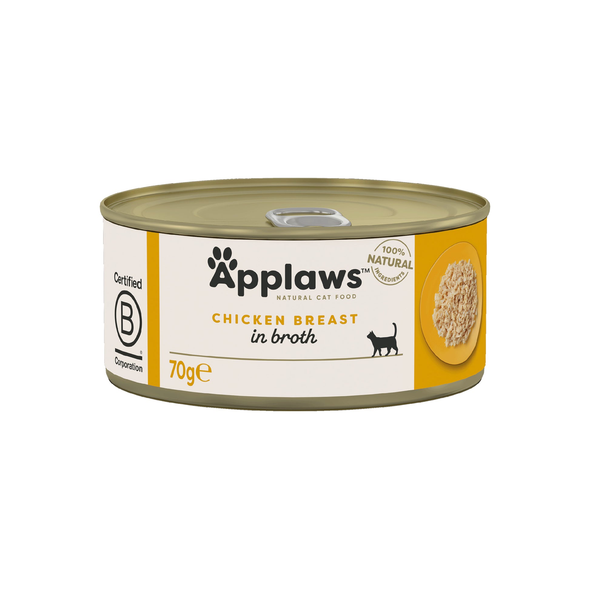 Applaws kycklingbröst i buljong är ett 100 % naturligt komplementfoder för vuxna katter som inte innehåller mer än de angivna ingredienserna. Innehåller inga tillsatser. Högkvalitativt protein.