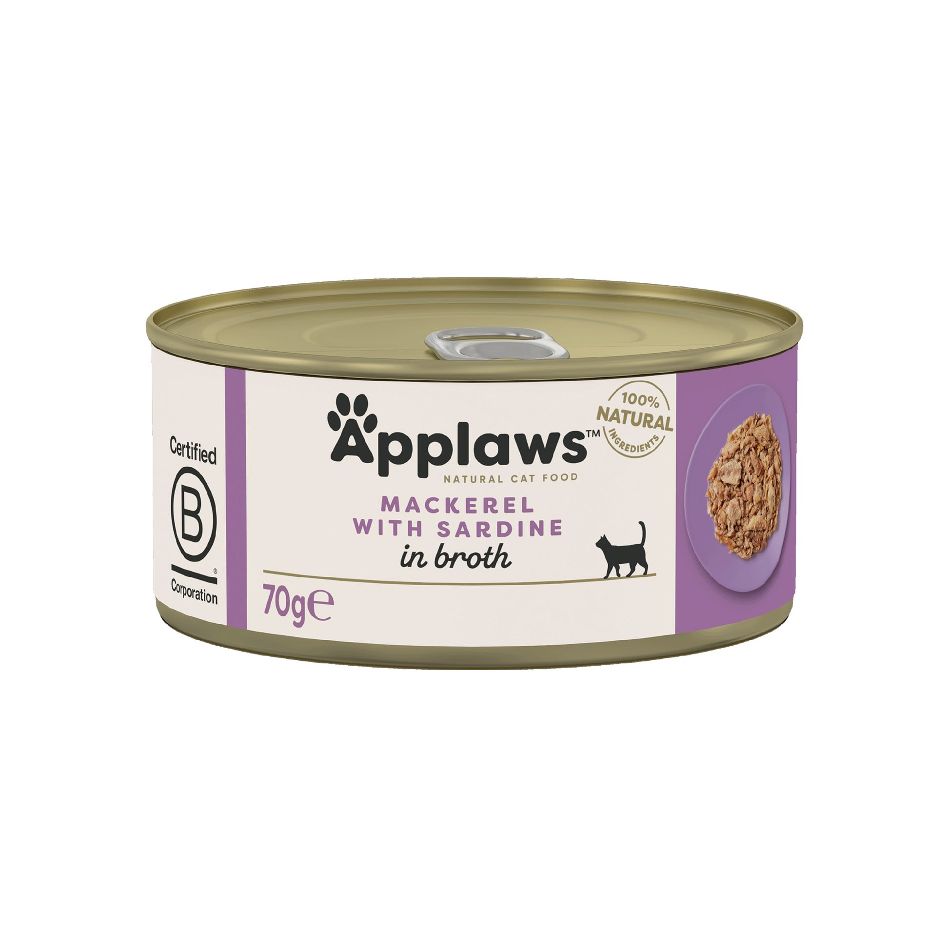 Applaws Makrill med Sardiner i buljong är ett 100 % naturligt komplementfoder för vuxna katter som inte innehåller mer än de angivna ingredienserna. Innehåller inga tillsatser. Högkvalitativt protein.
