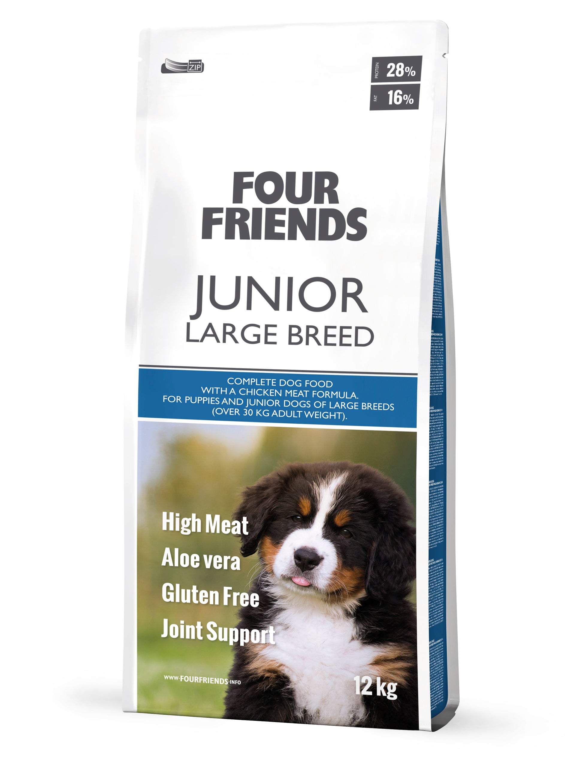 Junior har en strikt kontrollerad mineralsammansättning och kalorimängd för normal tillväxt av stora hundar.