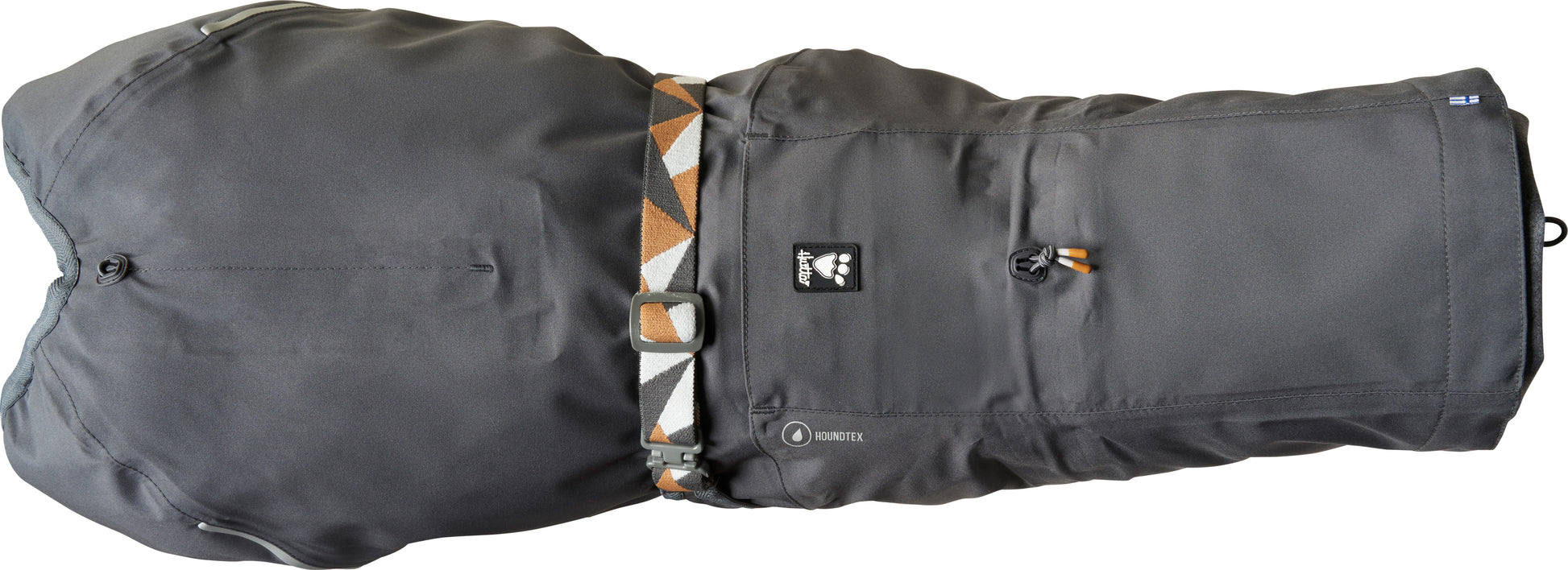 Tack vare bakbensöglorna hålls regnjackan på plats under snabba spurter och i blåsigt väder. Rygglängden är lätt justerbar för en tightare passform, och det justerbara stretchbältet i midjan hjälper till att hålla din hund bekväm. Reflekterande detaljer på fram- och baksidan ger extra säkerhet vid promenader tidigt på morgonen och sent på kvällen.