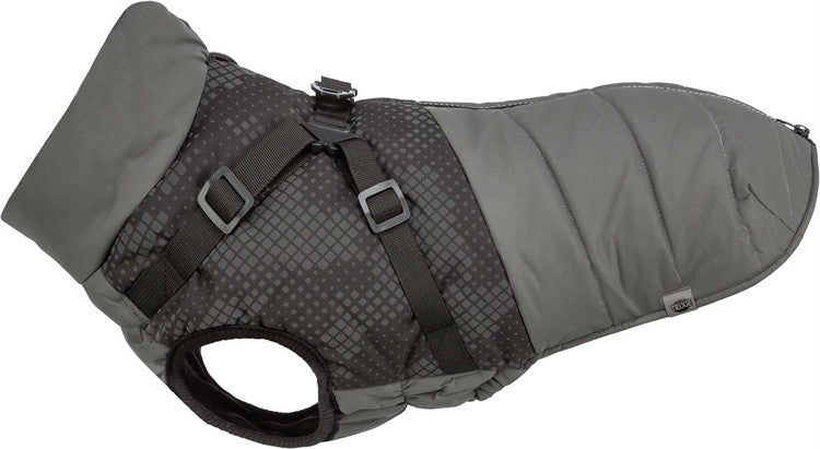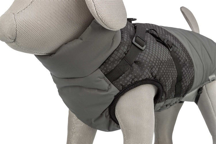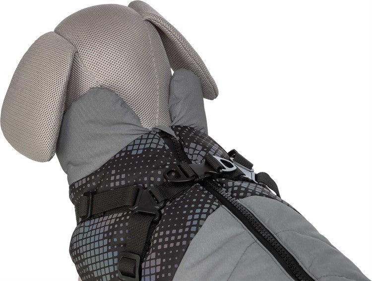 Pontis reflex hundtäcke med inbyggd sele – varmt och bekvämt med fleecefoder, vaddering och genomgående dragkedja på ryggen. Elastiskt magparti och öppning vid halsen ger rörelsefrihet, medan justerbara benöglor säkerställer perfekt passform.